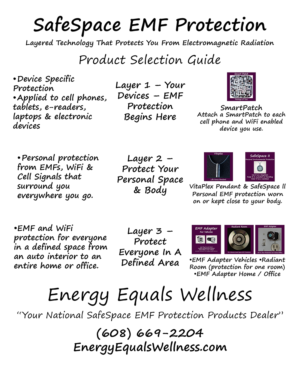 For a detailed description, test reports, and additional information on all SafeSpace Products, plus a wealth of information regarding EMF, WiFi and Cell Phone health risks, please visit the SafeSpace Products Page